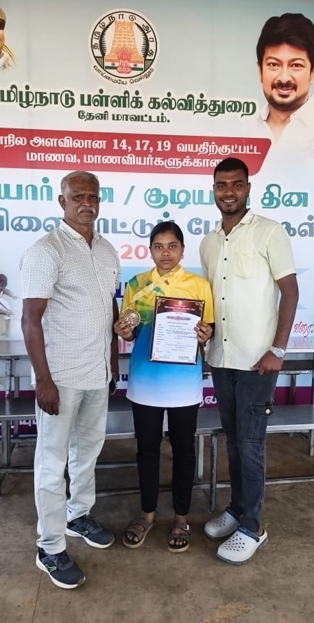 மாநில அளவிலான சிலம்பப் போட்டியில் எரசை அரசு பள்ளி மாணவி முதலிடம் தேனி மாவட்டத்திற்குப் பெருமை சேர்த்த தனுஷா!