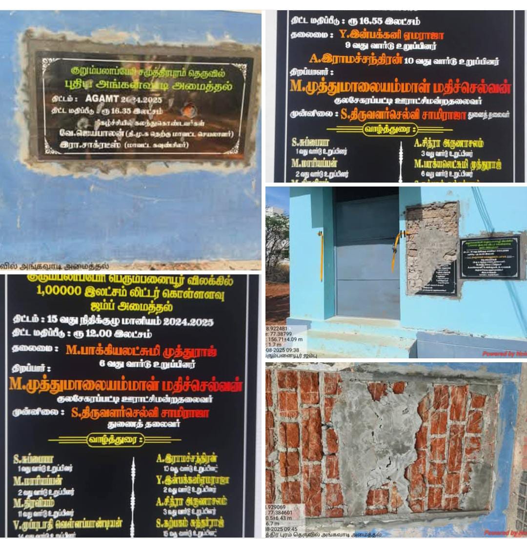 வேலூர் மாவட்டம் – குடியாத்தம் குடியாத்தம் அருகே உள்ள மேல் முட்டுக்கூர் ஊராட்சியில், அரசு நிதியில் பொதுப் பயன்பாட்டிற்கு தொடர்பில்லாத இடத்தில் கல்வெட்டு அமைக்கப்பட்டிருப்பது, அப்பகுதி மக்களிடையே கடும் எதிர்ப்பை ஏற்படுத்தியுள்ளது. தகவலின்படி, ஊராட்சி நிதியில் அமைக்கப்பட்ட கல்வெட்டு, பொதுமக்கள் பயன்பாட்டிற்கு…