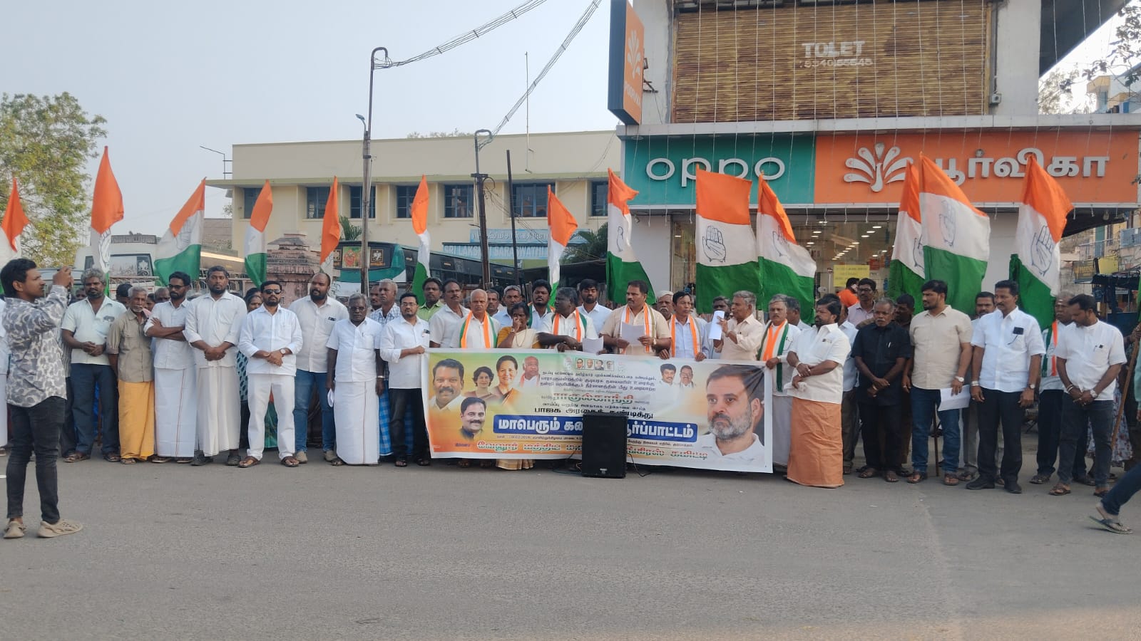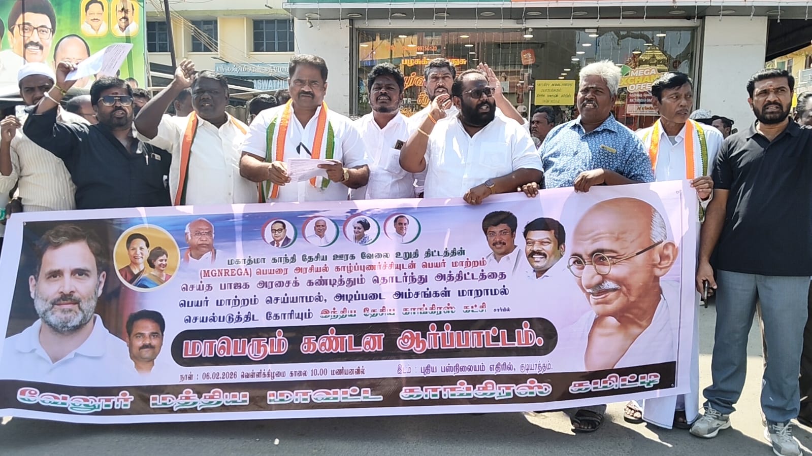 மகாத்மா காந்தி தேசிய ஊரக வேலை உறுதி திட்டம் பெயர் மாற்றத்திற்கு எதிராக காங்கிரஸ் கண்டன ஆர்ப்பாட்டம்.