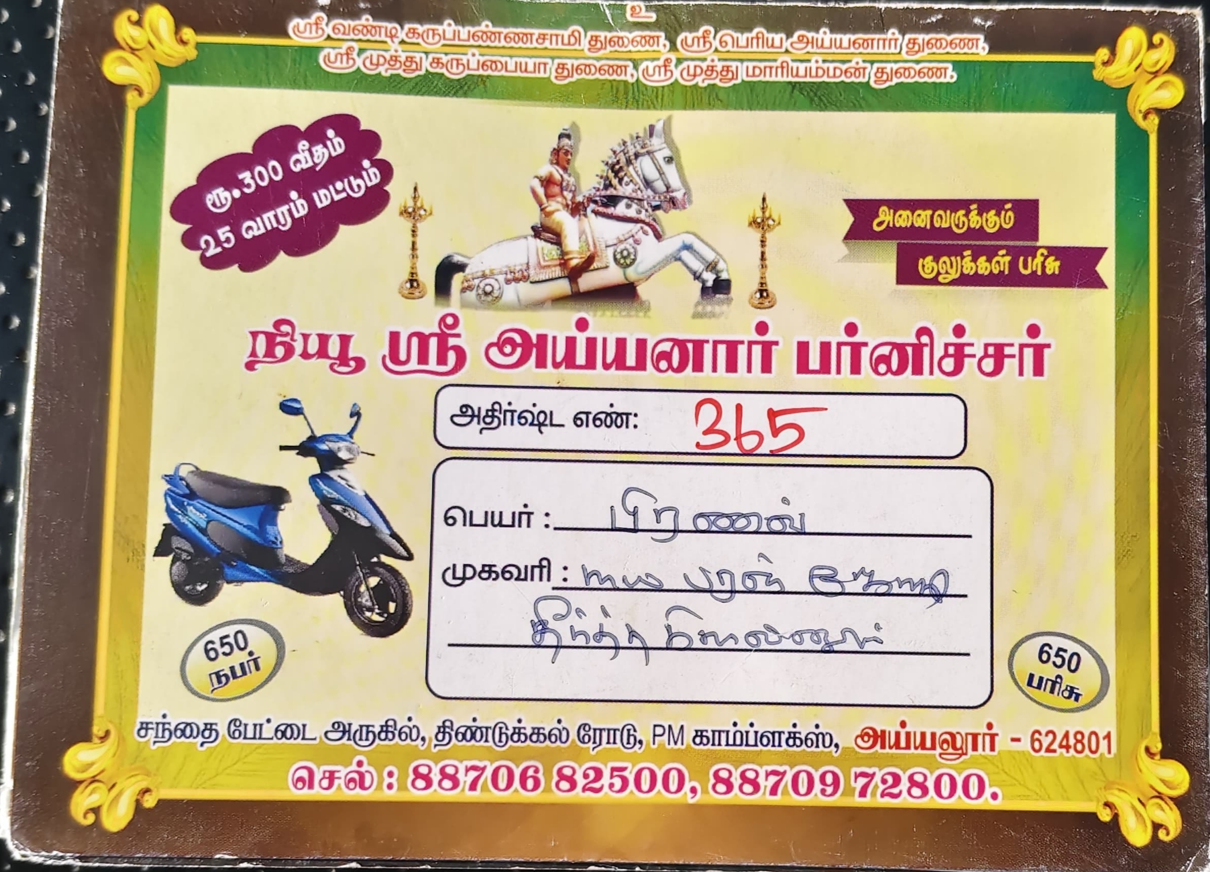 கிராமங்களை குறிவைத்து வார வசூல்திண்டுக்கல் மாவட்டம், அய்யலூரில் “நியூ ஸ்ரீ அய்யனார் பர்னிச்சர்” என்ற பெயரில் குலுக்கல் சீட்டு நடத்தி மோசடி நடந்ததாக புகார் எழுந்துள்ளது. புதுக்கோட்டையைச் சேர்ந்த ஒருவர் வாரம் ரூ.300 வீதம் வசூலித்து, அய்யலூரைச் சுற்றியுள்ள கிராமங்களை குறிவைத்து…