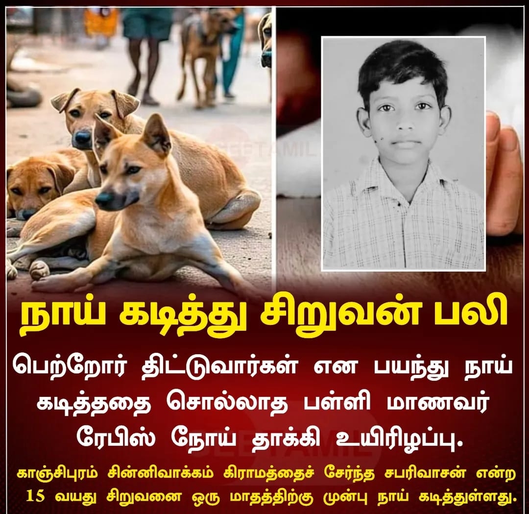 பெற்றோர் திட்டுவார்கள் என பயந்து, நாய் கடித்ததை சொல்லாமல் இருந்த ஒரு சிறுவன் ரேபிஸ் நோயால் உயிரிழந்தது மிகவும் வேதனைக்குரிய சம்பவம். இதுபோன்ற இழப்புகள் மீண்டும் நடைபெறாமல் இருக்க அனைவரும் விழிப்புடன் இருக்க வேண்டும். 🚨 மிக முக்கியமான நினைவூட்டல்கள்✔️ நாய்,…