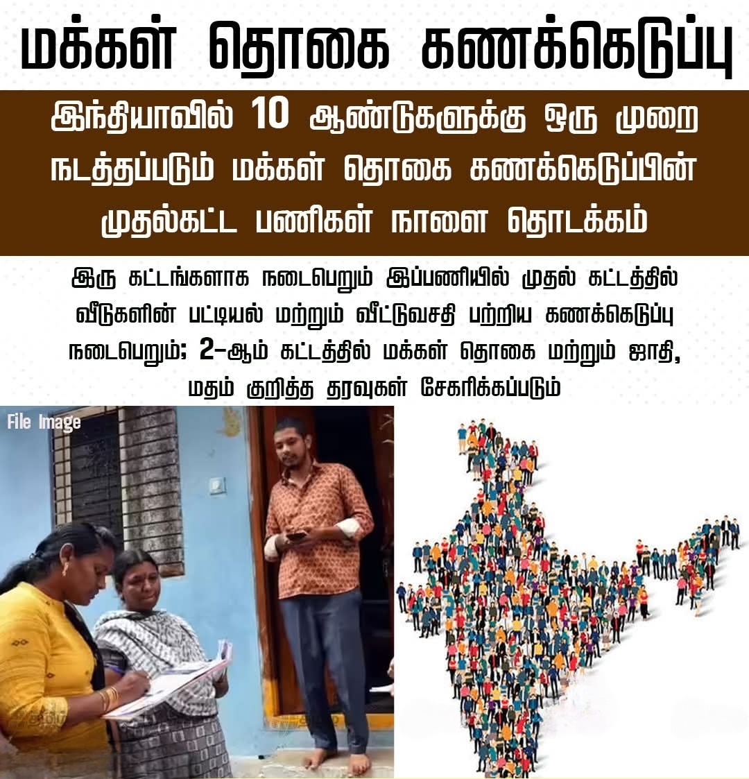 இந்தியாவில் மக்கள் தொகை கணக்கெடுப்பு: ஏப்ரல் 1 முதல் முதல்கட்ட பணிகள் தொடக்கம்.