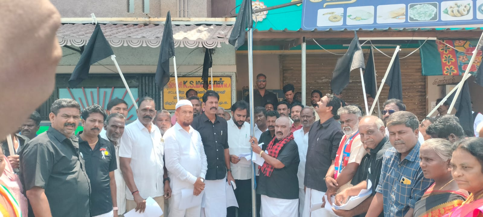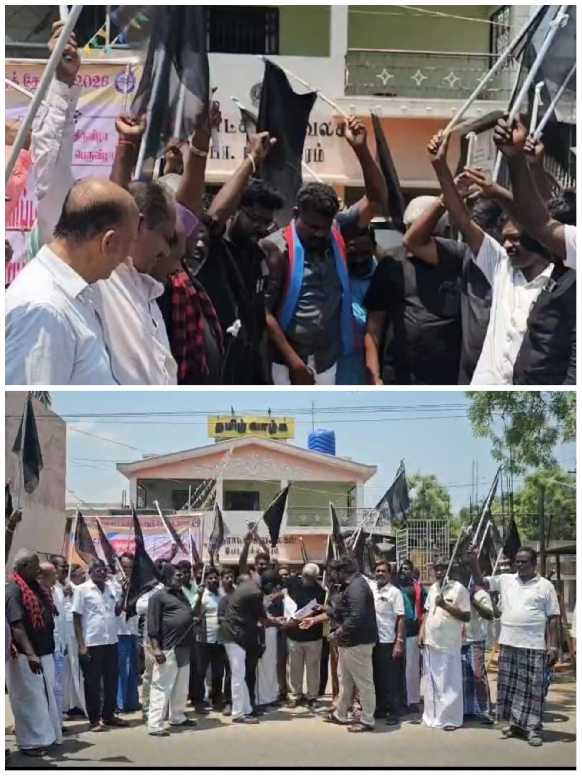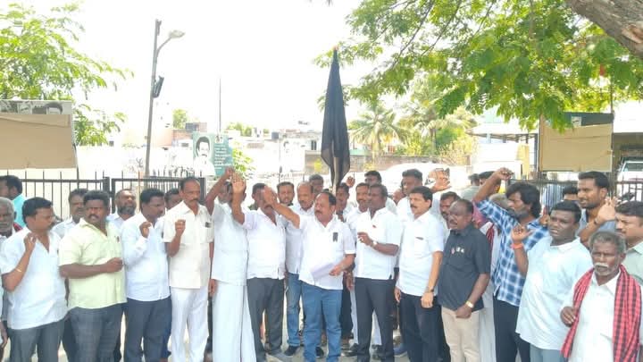 தொகுதி மறுவரையறை மசோதாவுக்கு எதிர்ப்பு: விழுப்புரத்தில் கருப்பு கொடி ஏற்றி தி.மு.க. கண்டன போராட்டம்.