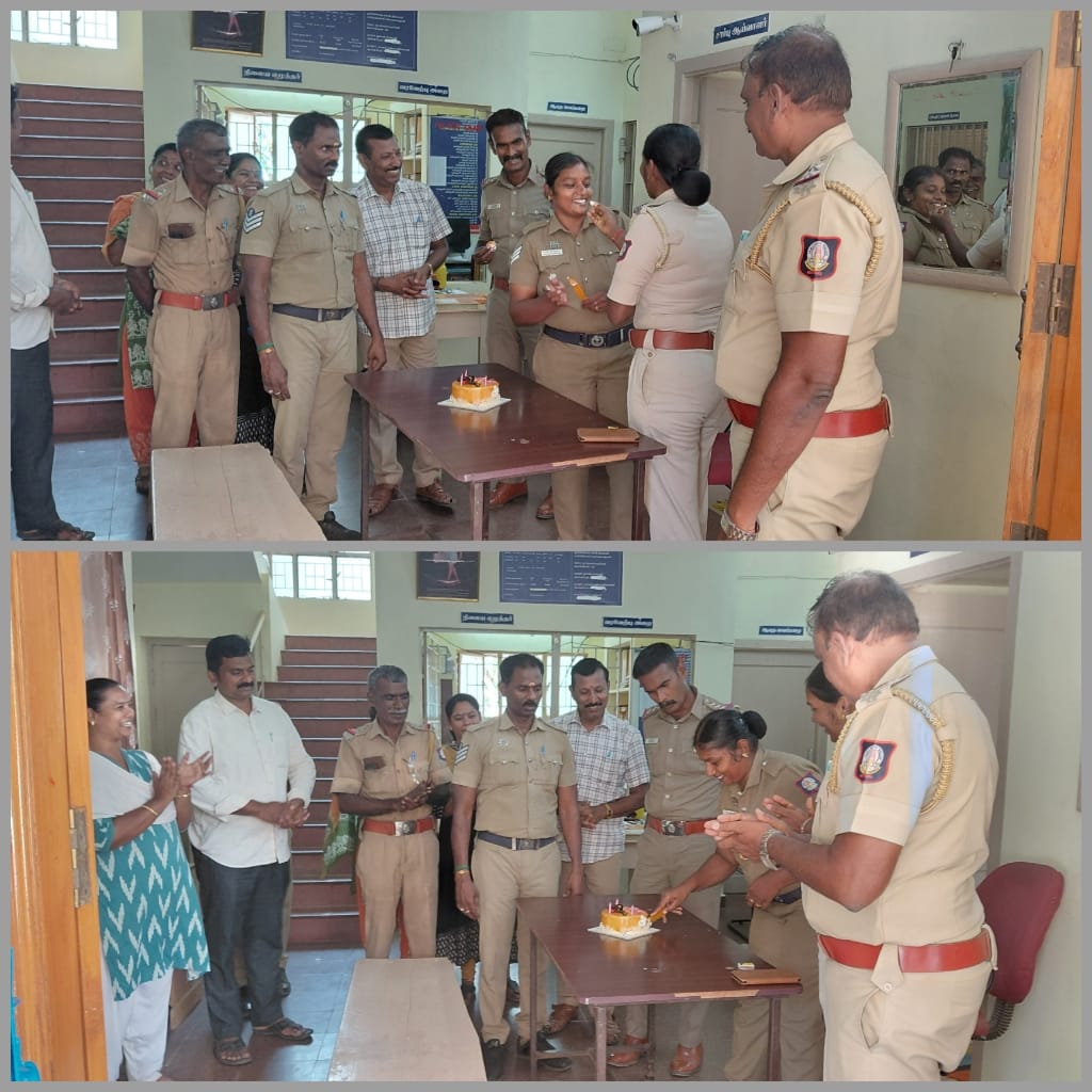 அம்பாத்துரை காவல் நிலையத்தில் காவலரின் பிறந்த நாள் விழா கொண்டாட்டம்.