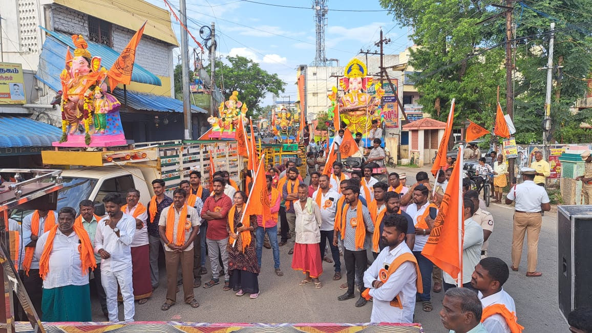 குடியாத்தம் இந்து முன்னணி சார்பில் விநாயகர் விஜர்சன ஊர்வலம் இன்று நடைபெற்றது.