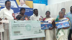 இந்நிகழ்ச்சியில் பயனாளிகளுக்கு கடன் இணைப்புகள் மற்றும் அடையாள அட்டைகள் தமிழ்நாடு அரசு மாநில உணவு ஆணையத்தின் தலைவர் திரு. என். சுரேஷ்ராஜன் வழங்கி சிறப்பித்தார்.