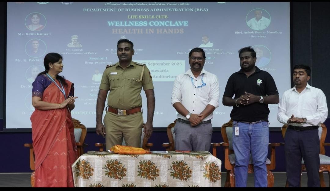 அரும்பாக்கம் டி.ஜி. வைஷ்னவ கல்லூரியில் முதலுதவி விழிப்புணர்வு வகுப்பு நடைபெற்றது.
