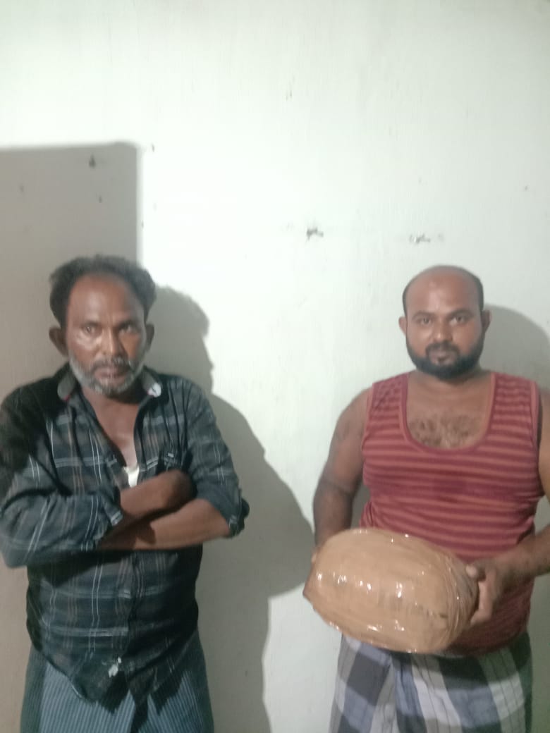 அப்போது மேற்கு வங்காளத்தில் இருந்து ஈரோடு நோக்கி தோல்கள் ஏற்றி வந்த ஒரு லாரியை நிறுத்தி சோதனை செய்தபோது, அதில் முதலில் 2 கிலோ கஞ்சா இருப்பது கண்டுபிடிக்கப்பட்டது. இதையடுத்து, லாரி டிரைவர் முத்துக்காளை (30), தந்தை: கருப்புசாமி, ராமநாதபுரம் மாவட்டம் பரமக்குடி தாலுகா மற்றும் இணை டிரைவர் திருச்செந்தூரான் (47), தந்தை: கண்ணுசாமி ஆகிய இருவரையும் போலீசார் கைது செய்தனர்.