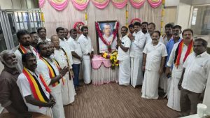 மாவட்ட கழகச் செயலாளர் ஜெயச்சந்திரன் தலைமையில் நடைபெற்ற இந்நிகழ்வில், பெருந்தலைவர் காமராஜர், மகாத்மா காந்தி மற்றும் தினமலர் நிறுவனர் ராமசுப்பையா அவர்களின் திருவருட்சிலைகளுக்கு மாலை அணிவித்து அஞ்சலி செலுத்தப்பட்டது.