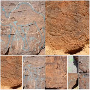 இதில் 176 ஓவியங்கள் அடங்கியுள்ளன. ஒட்டகங்கள், ஐபெக்ஸ், குதிரைகள், விண்மீன்கள் மற்றும் இன்றைய காலத்தில் அழிந்துபோன 130 அரோச்களின் வாழ்க்கை வரலாறுகள் பாறைகளில் வரையப்பட்டுள்ளன.