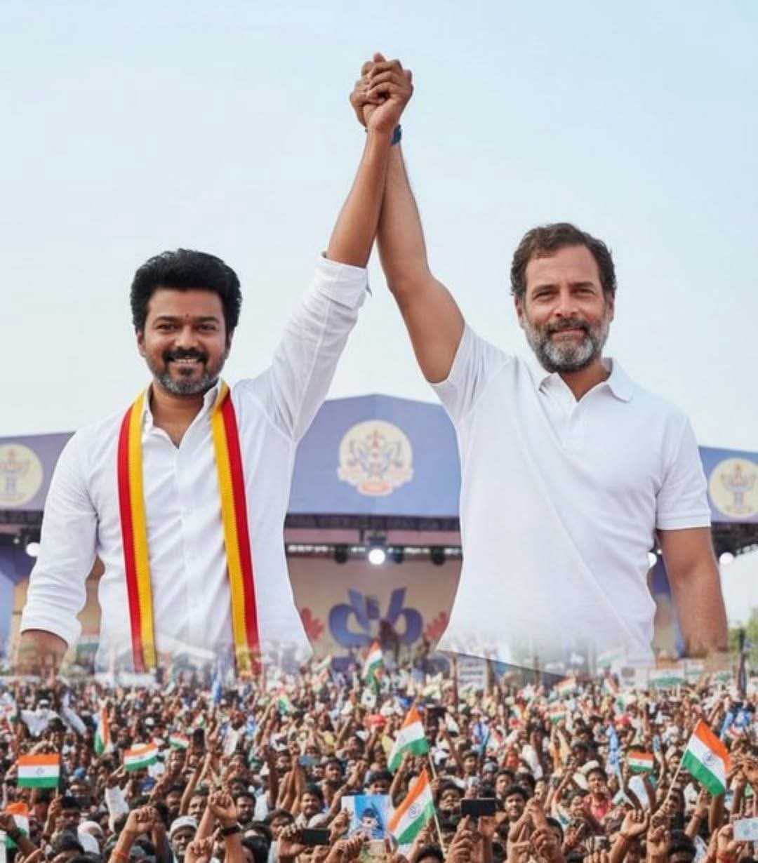 த.வெ.க ஆதரவு தளங்களில், விஜய் மற்றும் ராகுல் காந்தி இணைந்து பேசும் புகைப்படம் வைரலாகி வருவது குறிப்பிடத்தக்கது.