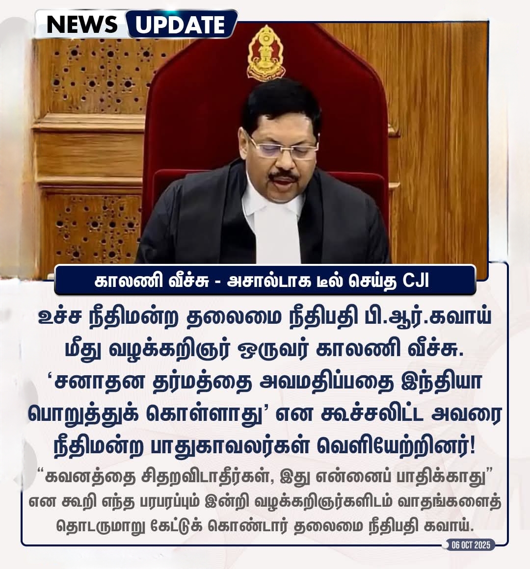 மிகக் கௌரவமான தலைமை நீதிபதி திரு. பி. ஆர். கவாய் அவர்களை உச்ச நீதிமன்றத்தின் உள்ளே அவமதிக்கும் வகையில் நடந்த இந்த அவமானகரமான செயல், நமது ஜனநாயகத்தின் உயர்ந்த நீதித்துறை பதவிக்கு எதிரான தாக்குதலாகும். இது கடுமையாகக் கண்டிக்கப்பட வேண்டியது.
