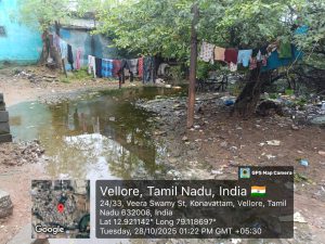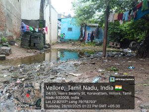 📍 வேலூர் மாவட்டம் – மாநகராட்சி 31வது வார்டு, வீராசாமி தெரு, கோரிமேடு, முள்ளிப்பாளையம்.