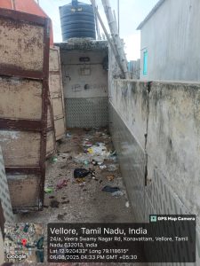 வேலூர் மாநகராட்சி 31 வது வார்டு, முள்ளிபாளையம், கோரிமேடு பகுதியில் உள்ள பொதுக் கழிப்பறை தற்போது சிதிலமடைந்து பயன்பாடின்றி உள்ளது. தண்ணீர் வசதி இல்லாமலும், துர்நாற்றத்துடன் காணப்படுவதால், மக்கள் திறந்த வெளியில் கழிப்பதை வழக்கமாக்கியுள்ளனர். இதனால் குறிப்பாக பெண்கள் பெரும் தர்மசங்கடத்துக்கு ஆளாகி வருகின்றனர்.