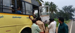 அந்நேரத்தில், பழுதடைந்த பேருந்தில் இருந்த பயணிகள் மதுரை நோக்கி செல்ல மாற்றுப் பேருந்தில் ஏற ஏற்பாடு செய்யப்பட்டபோது, கம்பத்திலிருந்து தேனி நோக்கி வந்த அரசு பேருந்து (வாகன எண்: TN 57 N 2742) அந்த இடத்தில் நிறுத்தப்பட்டது.