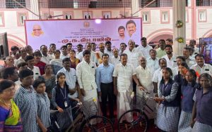 விழுப்புரம் மாவட்ட ஆட்சியர் ஷே. ஷேக் அப்துல் ரஹ்மான் ஆகியோர் இணைந்து விழுப்புரம் அரசு மகளிர் மாதிரி மேல்நிலைப் பள்ளி மாணவ–மாணவிகளுக்கு மிதிவண்டிகளை வழங்கினர்.