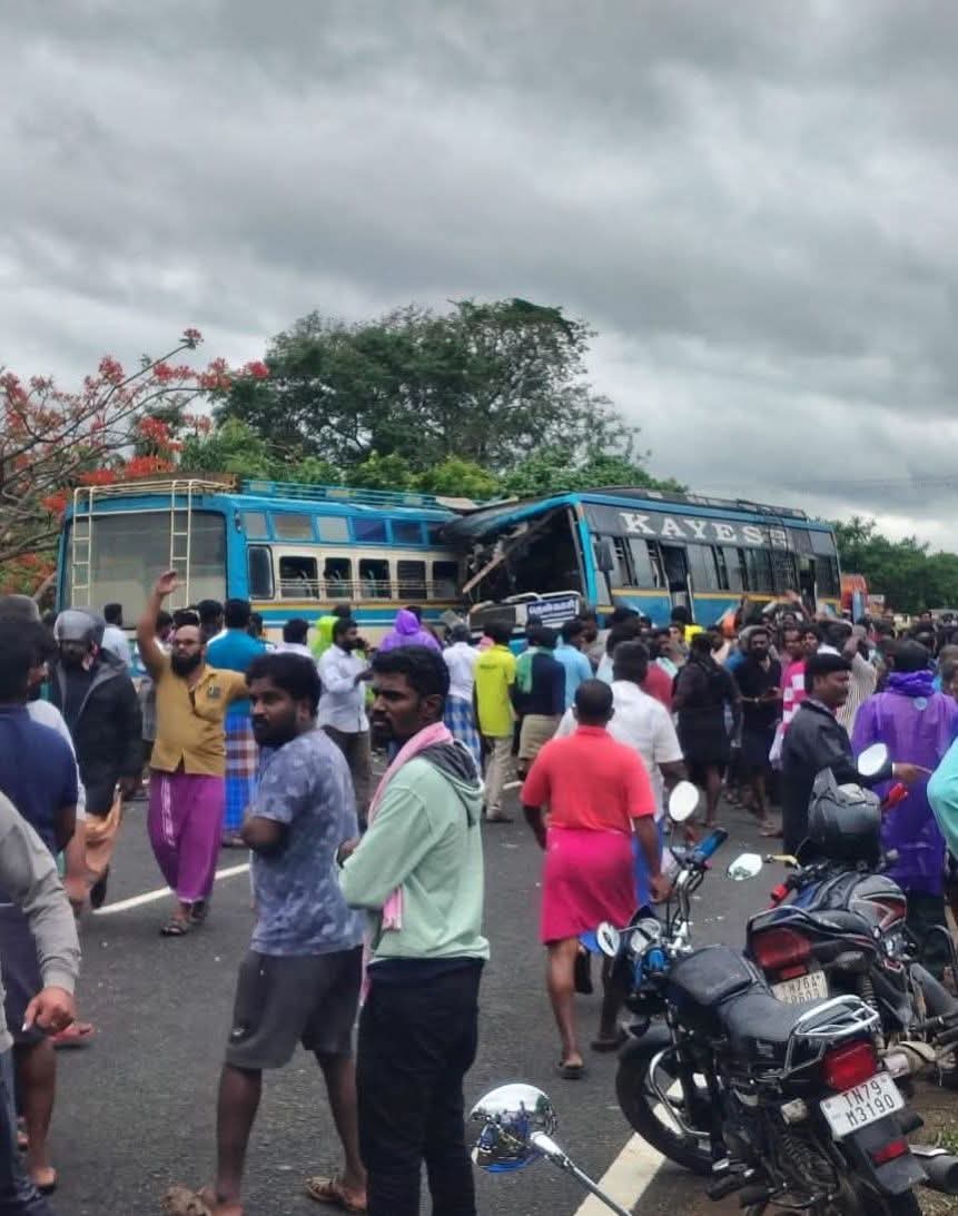 தென்காசி மாவட்டம் இடைகால் அருகே இன்று அதிகாலை ஏற்பட்ட கொடூரமான சாலை விபத்தில் இரண்டு தனியார் பேருந்துகள் நேருக்கு நேர் மோதி 8 பேர் உயிரிழந்ததுடன், பலர் தீவிர காயமடைந்தனர்.