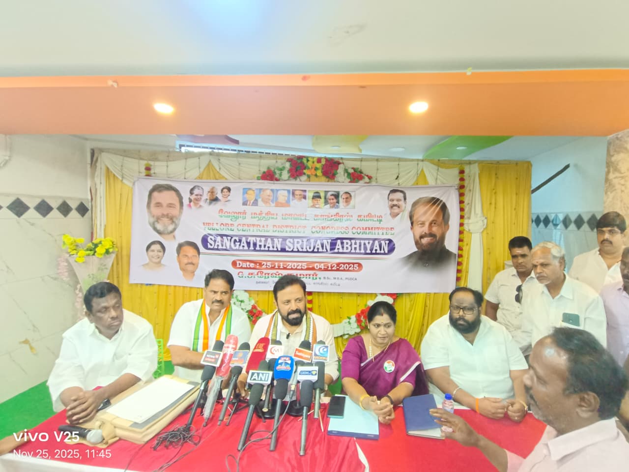 நவம்பர் 26, வேலூர் மாவட்டம் குடியாத்தம் ஆர்.எஸ். சாலையில் அமைந்துள்ள தனியார் திருமண மண்டபத்தில் இன்று அகில இந்திய காங்கிரஸ் கமிட்டி மற்றும் வேலூர் மத்திய மாவட்ட காங்கிரஸ் கமிட்டி சார்பில் செய்தியாளர் சந்திப்பு மற்றும் ஆலோசனை கூட்டம் நடைபெற்றது.