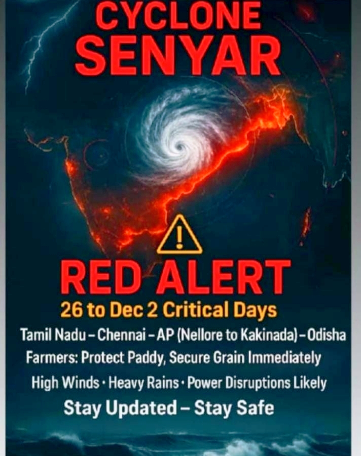 வங்கக் கடலில் உருவாகி வலுப்பெறும் சென்யார் புயல் காரணமாக, தமிழ்நாட்டில் சில மாவட்டங்களுக்கு கனமழை மற்றும் இடியுடன் கூடிய மழை பெய்யும் என இந்திய வானிலை ஆய்வு மையம் எச்சரித்துள்ளது. புயல் கரையை கடக்கும் போது ஏற்படும் பாதிப்புகள் இன்னும் முழுமையாக கணிக்க முடியாத நிலையில் உள்ளன.