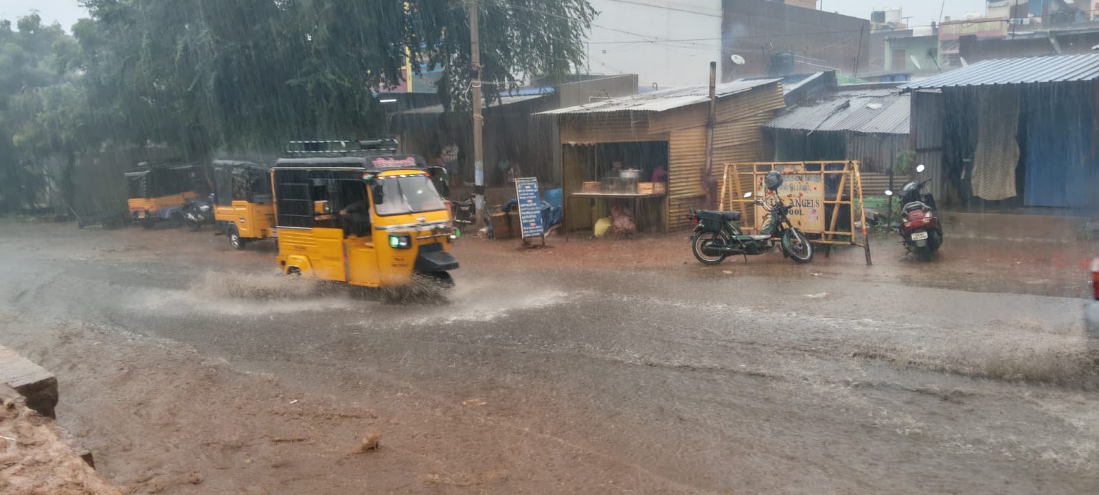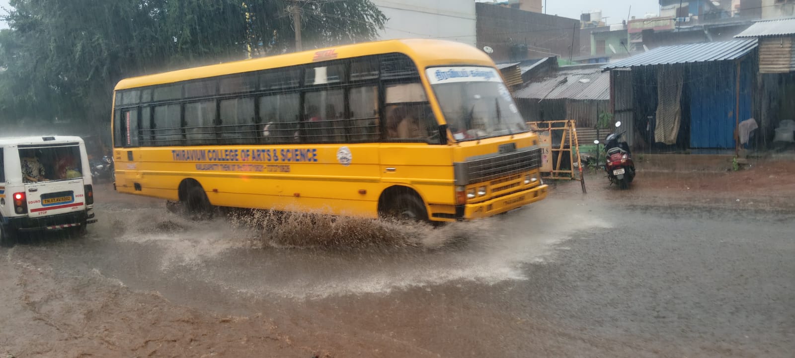 முழங்கால் அளவுக்கு தண்ணீர் நிற்கும் நிலையில் பாதசாரிகள் நடக்க முடியாமல், இருசக்கர, மூன்றுசக்கர வாகனங்கள் தண்ணீரில் மிதந்து ஊர்ந்து செல்லும் சூழல் உள்ளது.
