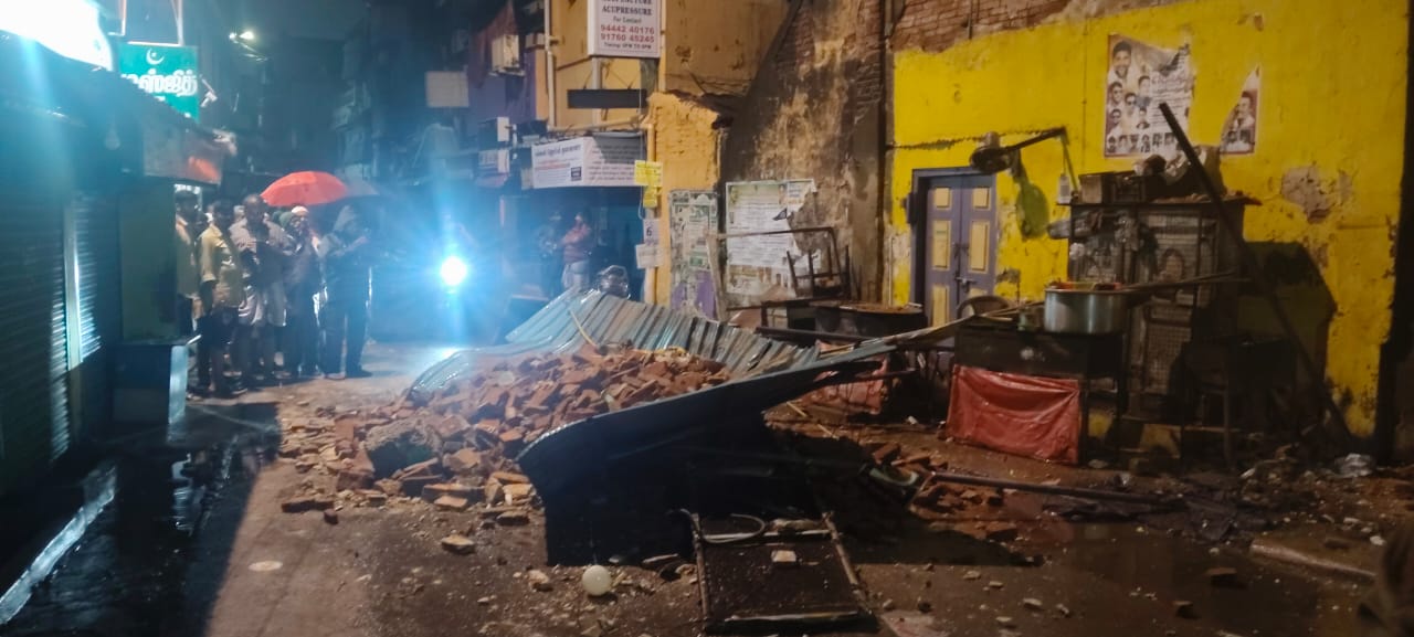 வடசென்னை பகுதிகளில் கடந்த இரண்டு நாட்களாக தொடர்ந்து பெய்த மழையின் தாக்கம் காரணமாக, பெரம்பூர் ஓட்டேரி பகுதியில் உள்ள 50 ஆண்டுகள் பழமையான கட்டிடம் ஒன்று இன்று இரவு திடீரென இடிந்து விழுந்தது.