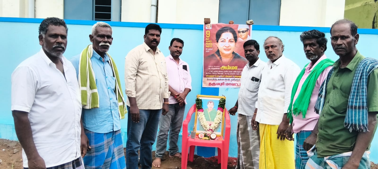 தர்மபுரி மாவட்டம் அரூர் அருகே உள்ள பாளையத்தில், முன்னாள் தமிழக முதலமைச்சர் ஜெ. ஜெயலலிதா அவர்களின் 9ஆம் ஆண்டு நினைவு நாள் எளிமையாகவும், மரியாதையுடனும் அனுசரிக்கப்பட்டது.