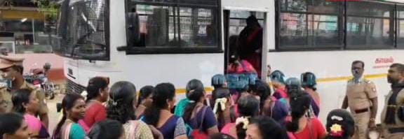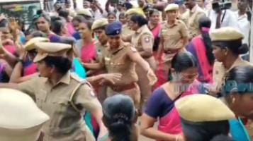 சுமார் 200க்கும் மேற்பட்ட பெண் அங்கன்வாடி ஊழியர்களை கைது செய்து,