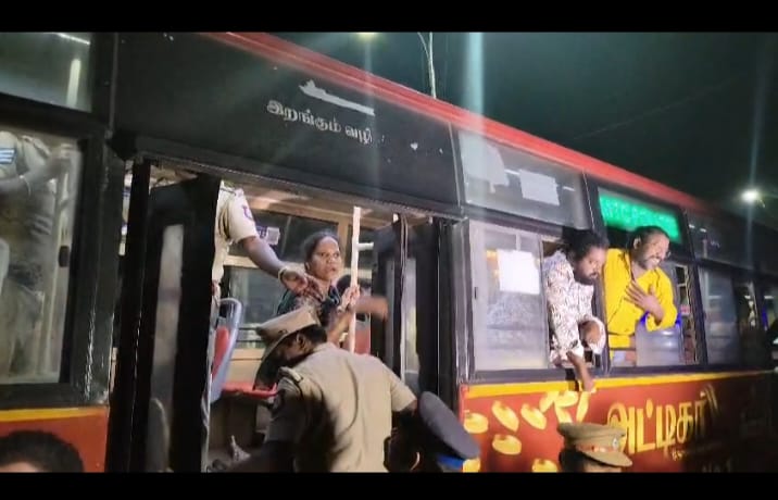 இதையடுத்து காவல்துறையினர் மீண்டும் அவர்களை கைது செய்து, வாகனங்களில் ஏற்றி போராட்டத்தை கலைக்க முயற்சி செய்தனர்.