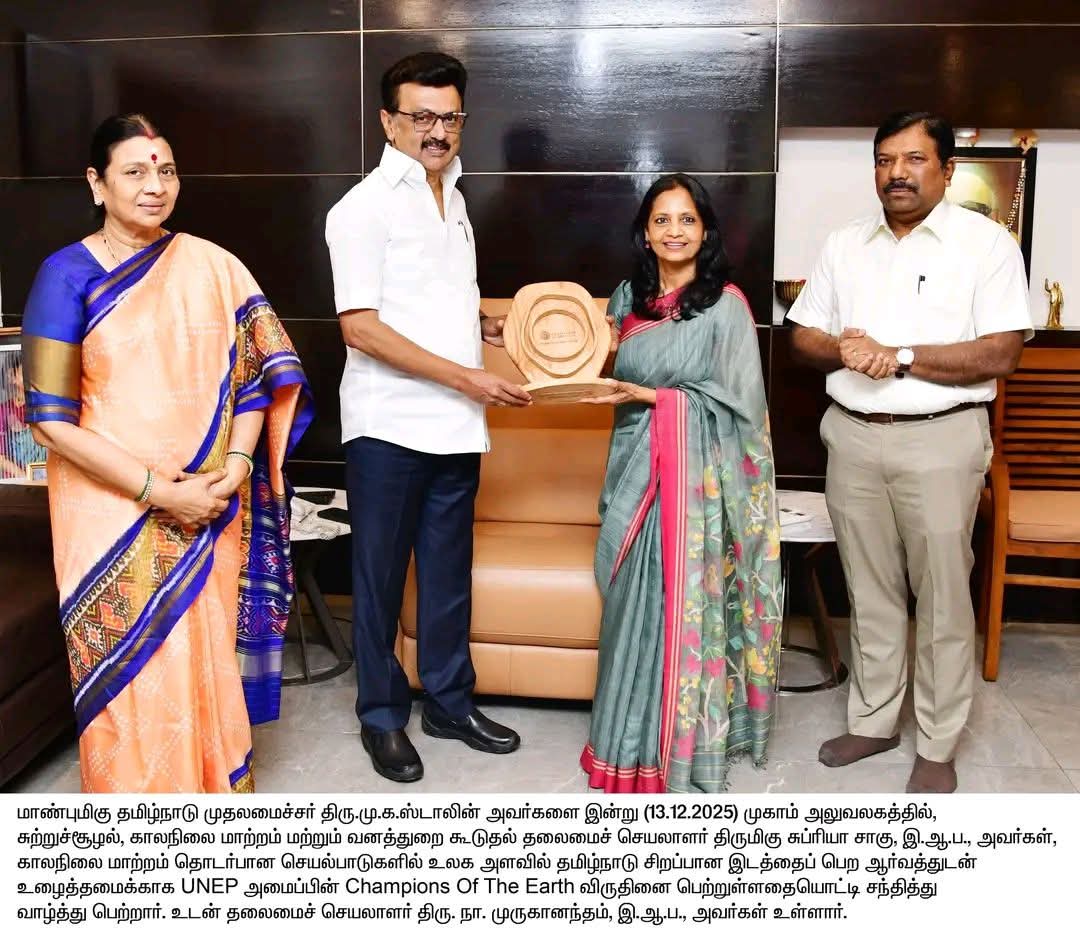 காலநிலை மாற்றம் தொடர்பான செயல்பாடுகளில் உலக அளவில் தமிழ்நாடு சிறப்பான இடத்தைப் பெற ஆர்வத்துடன் உழைத்தமைக்காக UNEP அமைப்பின் Champions Of The Earth விருதினை திருமதி சுப்ரியா சாகு, இ.ஆ.ப., அவர்கள் பெற்று ள்ளார்கள். உலக அளவிலில் இந்தியா வுக்கு – தமிழ் மண்ணிற்கு பெருமை சேர்த்துள்ள அவருக்கு வாழ்த்துக்களை தெரிவிக்கும் இந்த மகிழ்வான தருணத்தில் அவருடன் சேர்ந்து பணியாற்றிய சம்பவங்களை இங்கு பகிர்ந்து கொள்ள விரும்புகிறேன் .