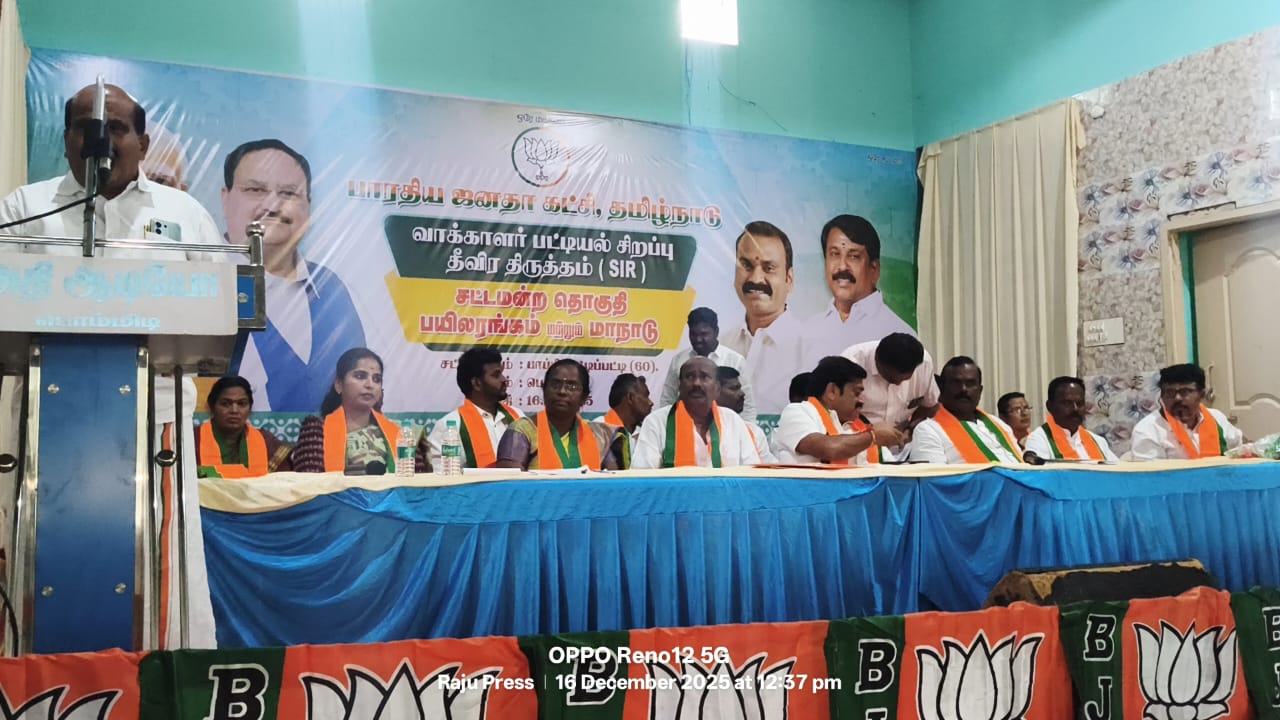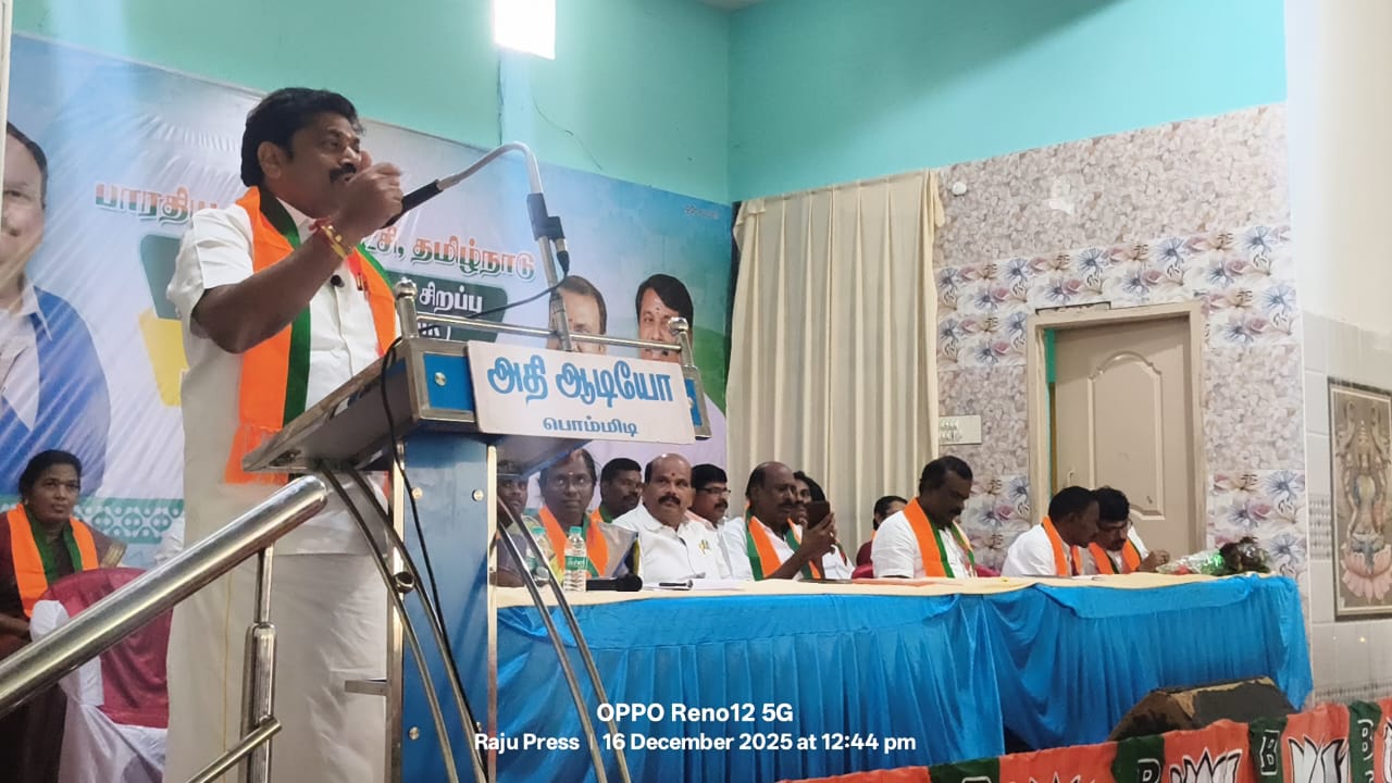 தருமபுரி மாவட்டம், பாப்பிரெட்டிப்பட்டி சட்டமன்றத் தொகுதிக்குட்பட்ட பொம்மிடியில் உள்ள தனியார் திருமண மண்டபத்தில், தமிழ்நாடு பாரதிய ஜனதா கட்சியின் சார்பில் வாக்காளர் பட்டியல் சிறப்பு தீவிர திருத்தம் (SIR) தொடர்பான சட்டமன்றத் தொகுதி பயிலரங்கம் மற்றும் மாநாடு இன்று நடைபெற்றது.
