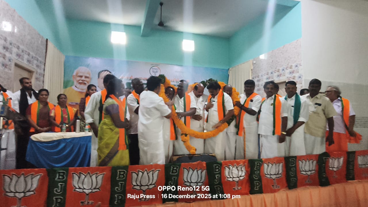 “திமுக, அதிமுக, தேமுதிக, விசிக, பாமக உள்ளிட்ட பல்வேறு அரசியல் கட்சிகளில் 20 முதல் 30 ஆண்டுகளாக இருந்த 50-க்கும் மேற்பட்டவர்கள் தற்போது பாரதிய ஜனதா கட்சியில் இணைந்துள்ளனர். பாரதிய ஜனதா கட்சி மக்களுக்கான கட்சி; குடும்ப அரசியலுக்கான கட்சி அல்ல,” என்று தெரிவித்தார்.