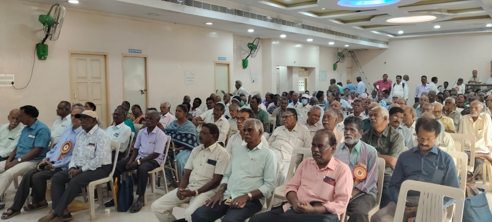 ஒவ்வொரு ஆண்டும் டிசம்பர் 17ஆம் தேதி பென்ஷனர் தினமாகக் கொண்டாடப்பட்டு வரும் நிலையில், அதனை முன்னிட்டு தெற்கு ரயில்வே பென்ஷனர்ஸ் சமாஜ் சார்பில் பெரம்பூரில் உள்ள தனியார் திருமண மண்டபத்தில் பென்ஷனர் தின விழா இன்று நடைபெற்றது.