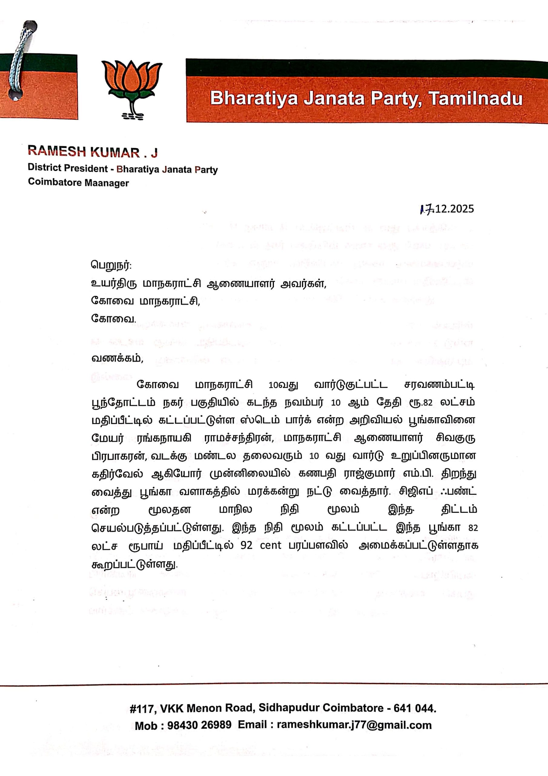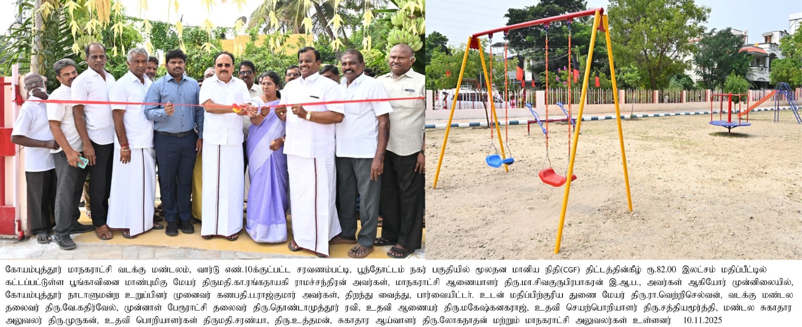 கோவை மாநகராட்சி வடக்கு மண்டலத்துக்குட்பட்ட 10வது வார்டு, சரவணம்பட்டி – பூந்தோட்டம் நகர் பகுதியில் ₹82 லட்சம் மதிப்பீட்டில் திறந்து வைக்கப்பட்ட பூங்காவில் முறைகேடு நடந்துள்ளதாக குற்றச்சாட்டு எழுந்துள்ளது.