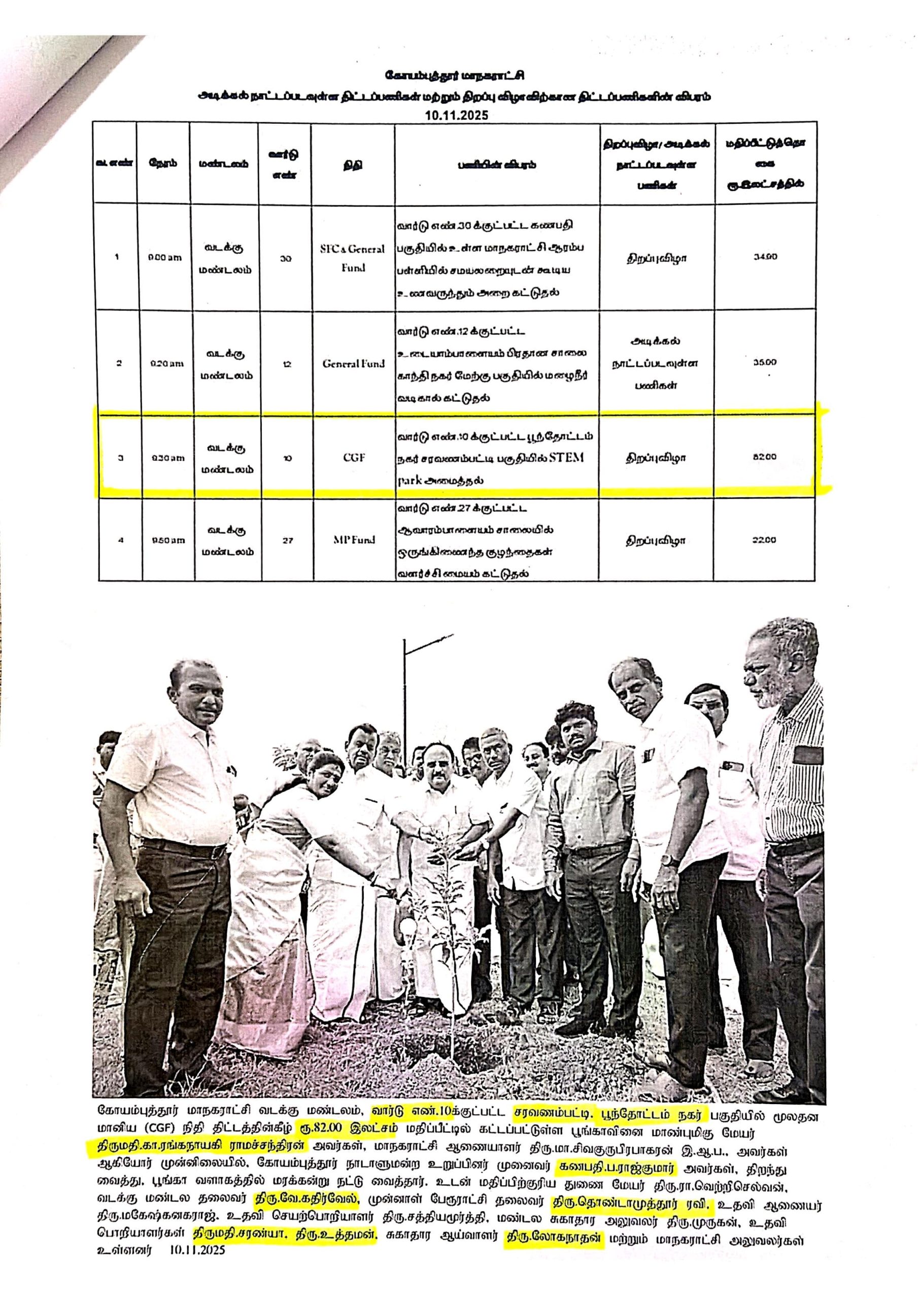 ஸ்டெம் பார்க் திட்டம் மத்திய அரசின் மானிய நிதியின் மூலம் செயல்படுத்தப்பட வேண்டிய திட்டம் என கூறப்படும் நிலையில், வடக்கு மண்டல தலைவர் மற்றும் 10வது வார்டு உறுப்பினருமான கதிர்வேல், தனது அதிகாரத்தை பயன்படுத்தி,