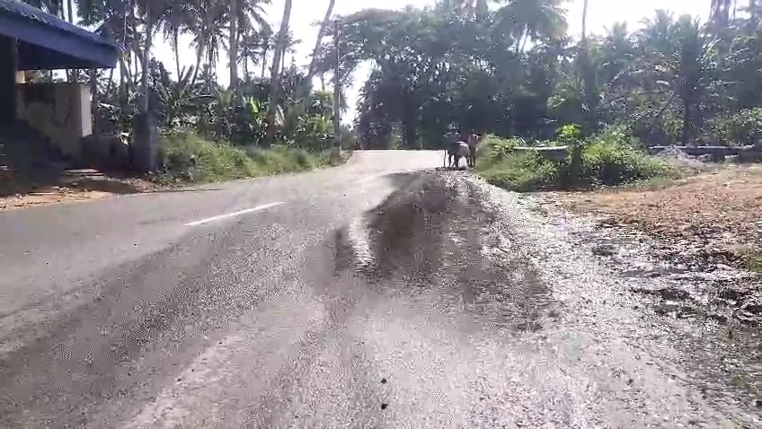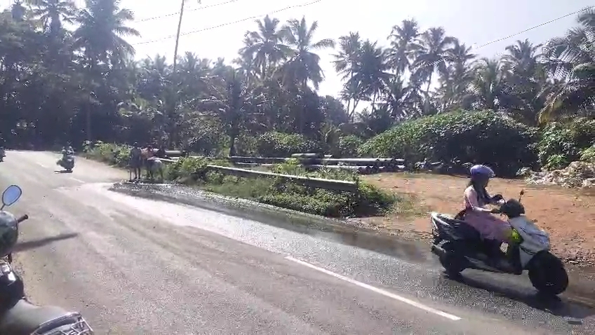 பல ஆண்டுகளாக உடைந்து நீர் வெளியேறிக் கொண்டிருக்கும் கூட்டு குடிநீர் குழாய் காரணமாக சாலை முழுவதும் சேறும் வழுக்கலாக மாறிய நிலையில்,