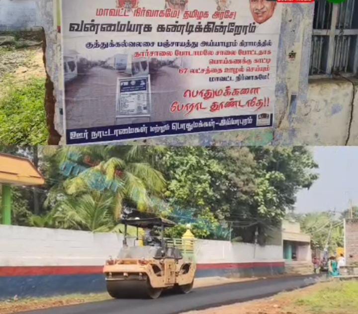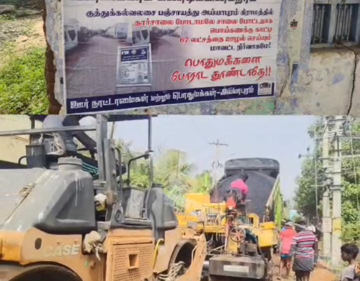 போஸ்டர்கள் ஒட்டப்பட்டதற்கு பின்னரே, நேற்று அவசரகதியில் அந்த பகுதியில் சாலை வசதி அமைக்கப்பட்டதாகவும், ஆனால் போடப்பட்ட சாலை தரமற்றதாக இருப்பதாகவும் பொதுமக்கள் குற்றம் சாட்டியுள்ளனர்.