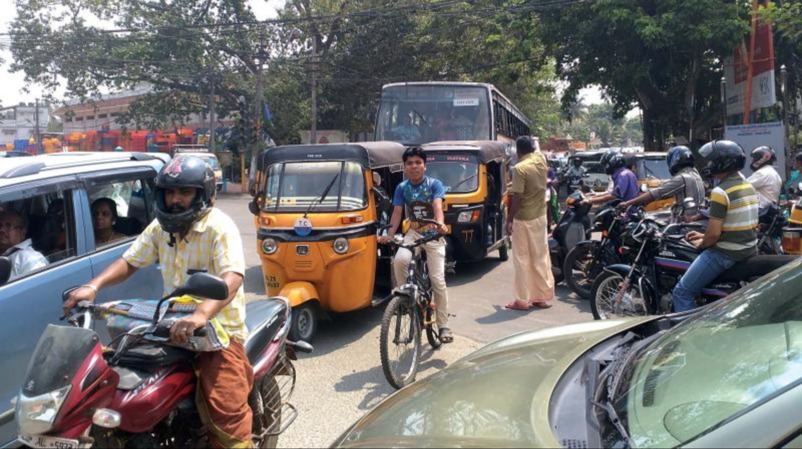 புதிய பஸ் நிலையம் அருகே செயல்பட்டு வரும் மூன்று திருமண மண்டபங்களில் ஒரே நேரத்தில் திருமண விழாக்கள் நடைபெற்றன. இதனால் விழாவில் பங்கேற்றவர்கள் தங்களது வாகனங்களை சாலையோரங்களிலும் பிரதான சாலையிலும் நிறுத்திவிட்டு சென்றனர். இதன் காரணமாக சாலையின் அகலம் குறைந்து, போக்குவரத்து முற்றிலும் முடங்கும் நிலை உருவானது.