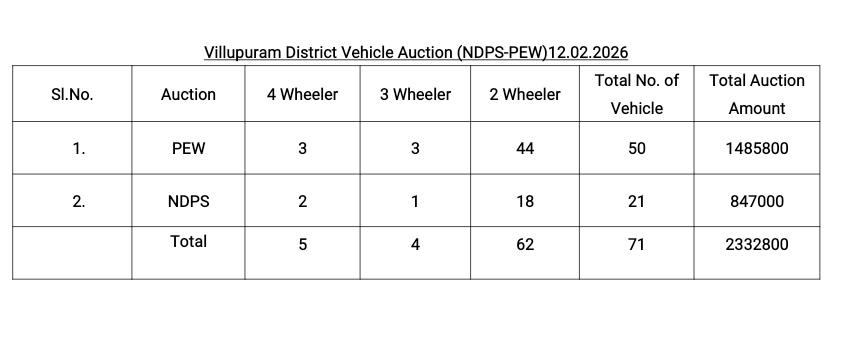 கூடுதல் காவல் கண்காணிப்பாளர் தினகரன் அவர்களின் தலைமையில், இன்று விழுப்புரம் காக்குப்பம் ஆயுதப்படை வளாகத்தில் இந்த ஏலம் நடைபெற்றது.