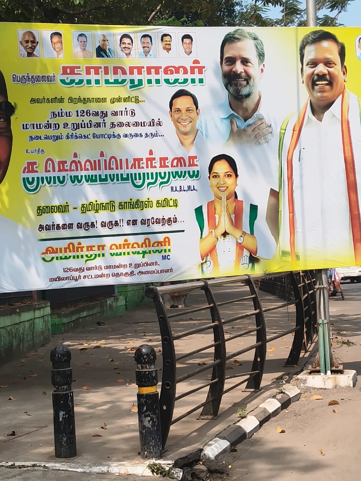 சென்னை மயிலாப்பூர் பகுதியில் புதிய வடிவிலான காங்கிரஸ் கொடிகள் வரிசையாக ஏற்றப்பட்டுள்ள சம்பவம் அரசியல் வட்டாரங்களில் பரபரப்பை ஏற்படுத்தியுள்ளது. குறிப்பாக மந்தைவெளி பகுதியிலுள்ள அல்போன்சா விளையாட்டு திடல் மற்றும் அதனைச் சுற்றியுள்ள சாலைகளில் இந்தக் கொடிகள் அதிகளவில் காணப்பட்டதாக தகவல் வெளியாகியுள்ளது.