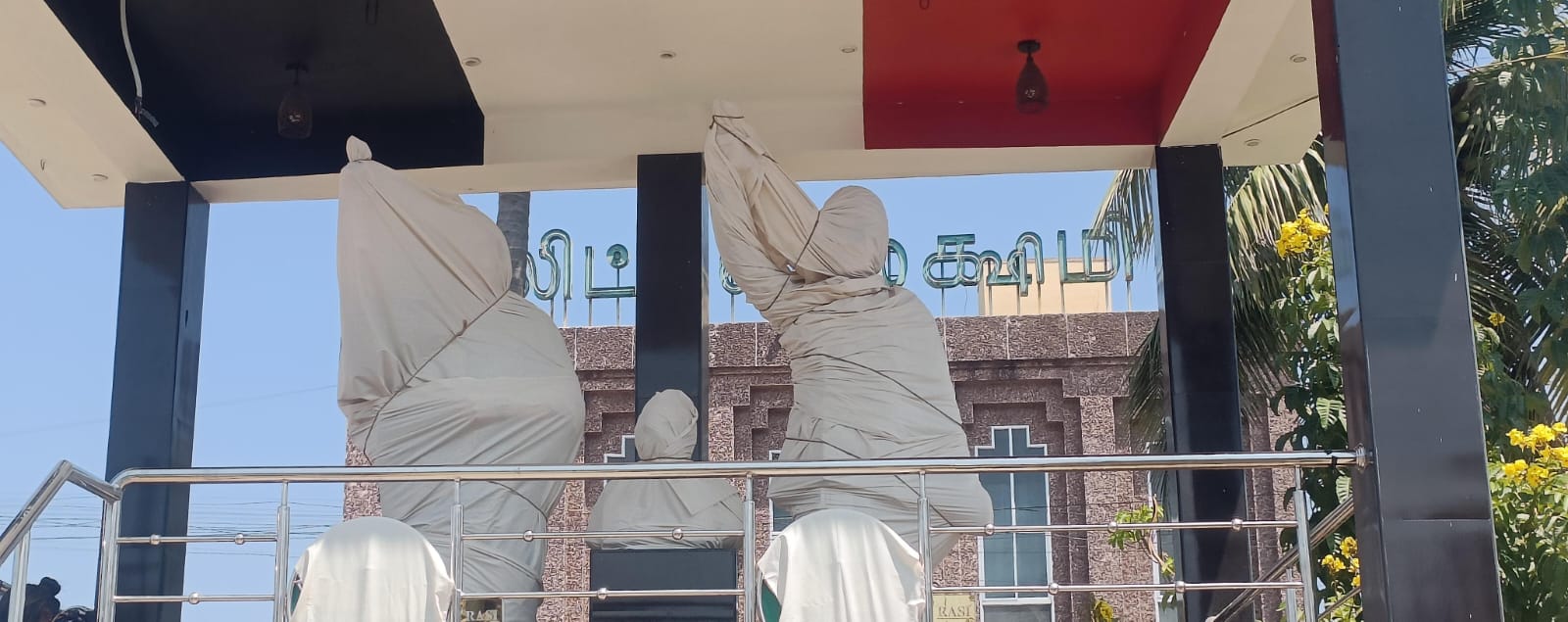 “தேர்தல் ஆணையம் தெளிவான அறிவிப்பு வழங்கியிருந்தும், உள்ளூர் தேர்தல் அலுவலர்கள் அதை பின்பற்றாமல் செயல்படுவது புரியாத ஒன்றாக உள்ளது. தேவையற்ற முறையில் சிலைகள் மறைக்கப்பட்டுள்ளதால் பொதுமக்கள் மத்தியில் குழப்பம் நிலவுகிறது. உடனடியாக மறைக்கப்பட்ட சிலைகளை திறக்க அதிகாரிகள் நடவடிக்கை எடுக்க வேண்டும்” என கோரிக்கை விடுத்துள்ளனர்.
