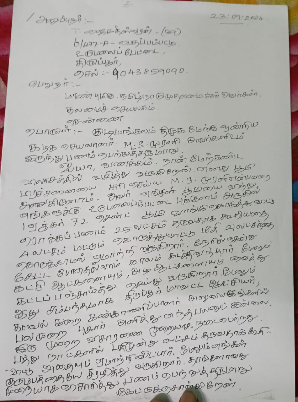 “சம்பந்தப்பட்ட அதிகாரிகள் விரைந்து நடவடிக்கை எடுத்து, பாதிக்கப்பட்ட குடும்பத்திற்கு நியாயம் வழங்க வேண்டியது அவசியம்”
