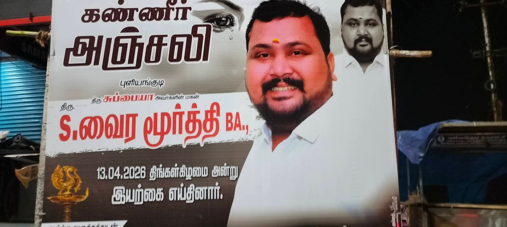 உயிரிழந்த வைரமூர்த்திக்கு வேல்மயில் என்ற மனைவியும், 4 வயது மகள் சிவஸ்ரீயும் உள்ளனர். அவர் தமிழக மக்கள் முன்னேற்ற கழகம் கட்சியின் இளைஞரணி நிர்வாகியாக இருந்தவர் என்பது குறிப்பிடத்தக்கது.