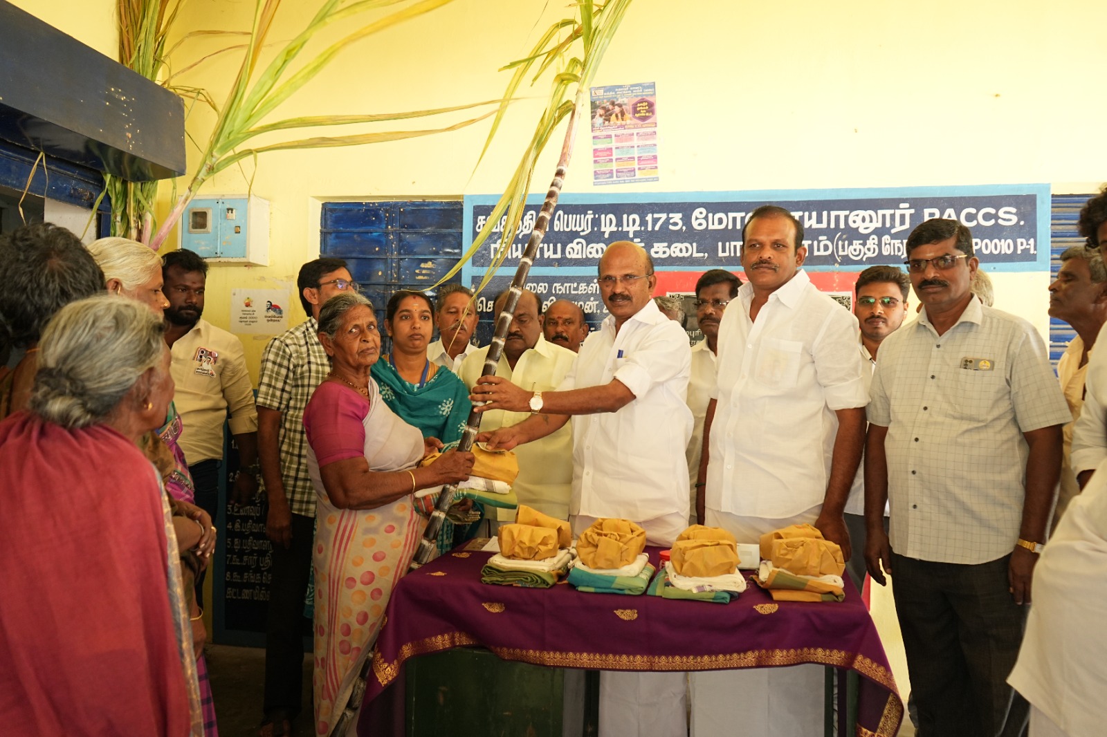 குடியாத்தத்தில் நியாய விலை கடைகளில் பொங்கல் பரிசு தொகுப்புகள் வழங்கல்.