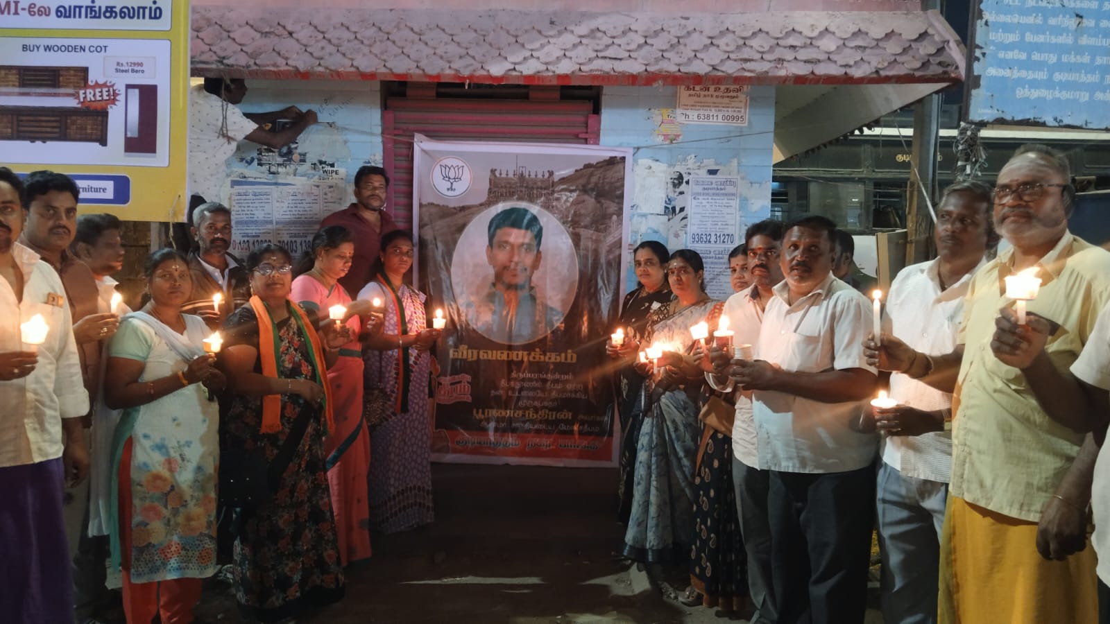 குடியாத்தத்தில் பூரண சந்திரன் நினைவாக பாஜக சார்பில் மெழுகுவர்த்தி ஏந்தி மௌன ஊர்வலம்.