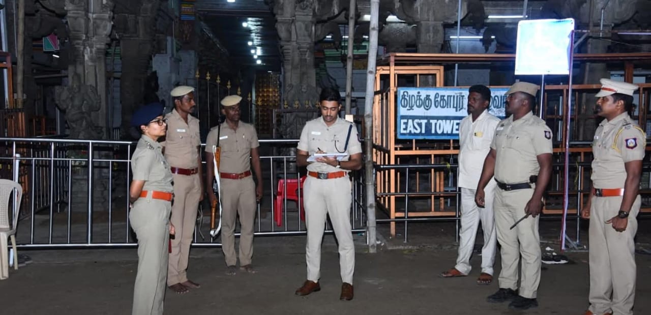 ராமநாதசுவாமி திருக்கோயிலில் தீவிர பாதுகாப்பு — மாவட்ட காவல் கண்காணிப்பாளர் G. சந்தீஷ், I.P.S., நேரில் ஆய்வு.