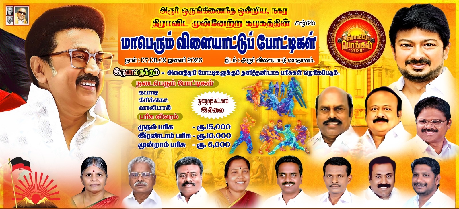 விழுப்புரம் | ஜனவரி 2026 தமிழ்நாடு அரசின் விளையாட்டு மேம்பாட்டு அணுகுமுறையும்,திராவிட முன்னேற்றக் கழகத்தின் மக்கள்–இளைஞர் இணைப்பு அரசியலும் பிரதிபலிக்கும் வகையில்,“திராவிட பொங்கல் விழா – 2026” நிகழ்ச்சிகள் விழுப்புரம் தெற்கு மாவட்டத்தில் உற்சாகமாக நடைபெற்று வருகின்றன. அதன் ஒரு பகுதியாக,விக்கிரவாண்டி…